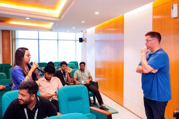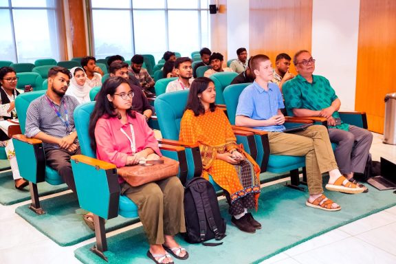 Our Chairman Peter Pogose was invited by Professor Gregory Simons of Daffodil International University to speak informally with undergraduate students as part of their course on Sustainable Communication for Social Change.