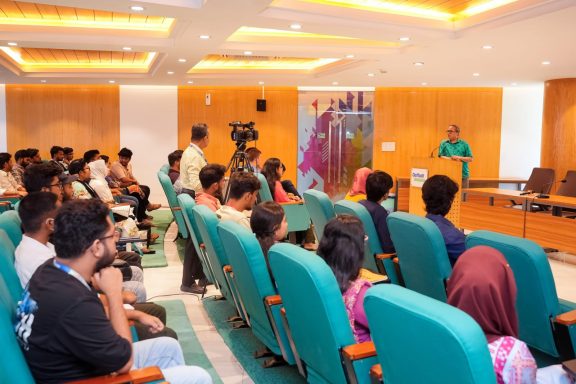 Held in a classroom of 20 engaged students, the session blended storytelling, principles of communication, and practical inspiration. Peter spoke about NPF’s mission to build bridges of opportunity in Education, Technology, and Sports, with a special focus on youth empowerment, grassroots innovation, and sustainable impact across Bangladesh.